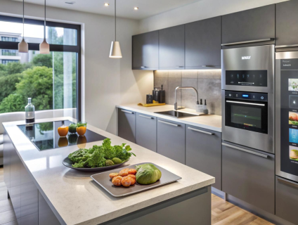 A Kitchen with a Breakfast Counter brings together style and convenience by integrating a casual dining area within the kitchen. The counter often serves as a boundary between the cooking zone and the living area, making it ideal for smaller spaces. It provides a perfect spot for quick meals, coffee breaks, or even additional prep space. This setup fosters a cozy and interactive environment, blending functionality with comfort.