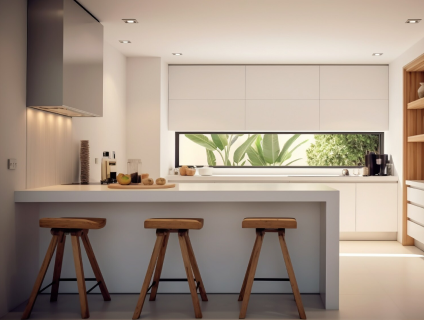 A Kitchen with a Breakfast Counter brings together style and convenience by integrating a casual dining area within the kitchen. The counter often serves as a boundary between the cooking zone and the living area, making it ideal for smaller spaces. It provides a perfect spot for quick meals, coffee breaks, or even additional prep space. This setup fosters a cozy and interactive environment, blending functionality with comfort.